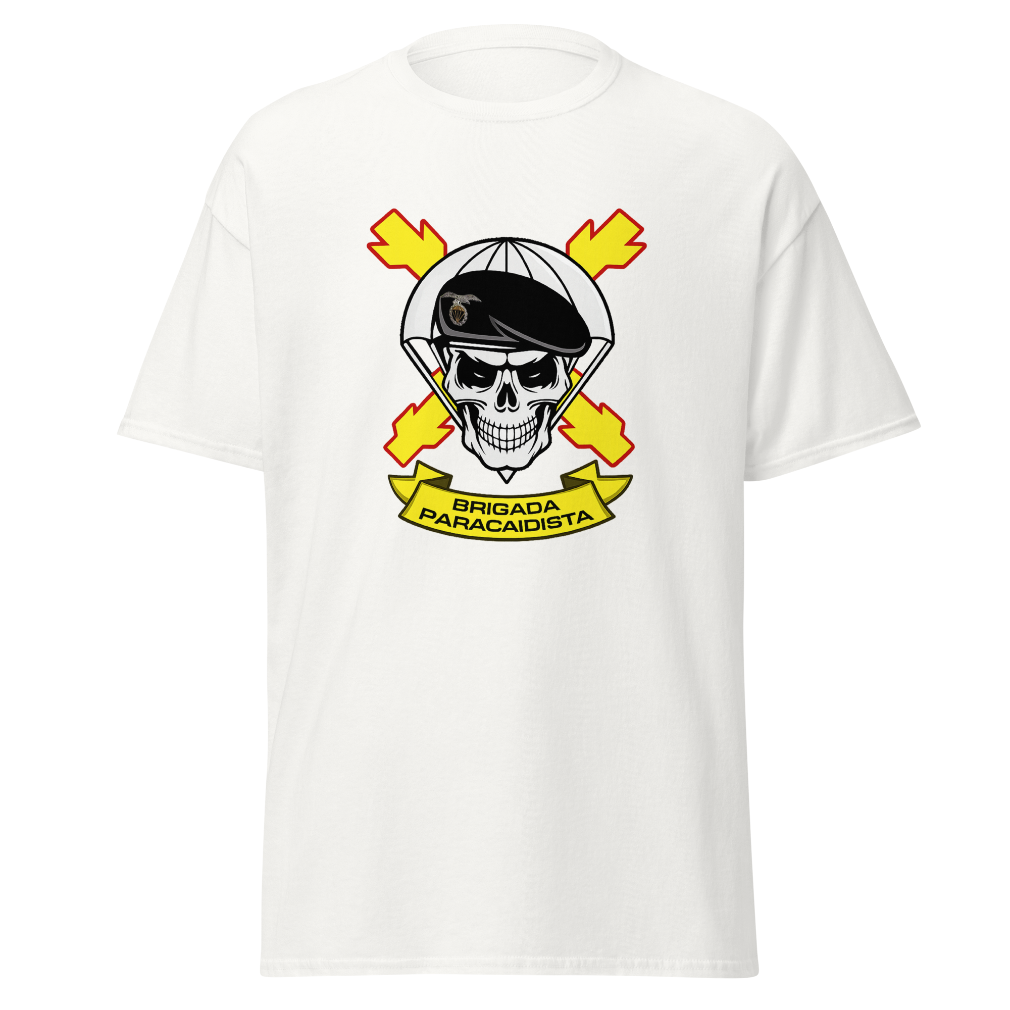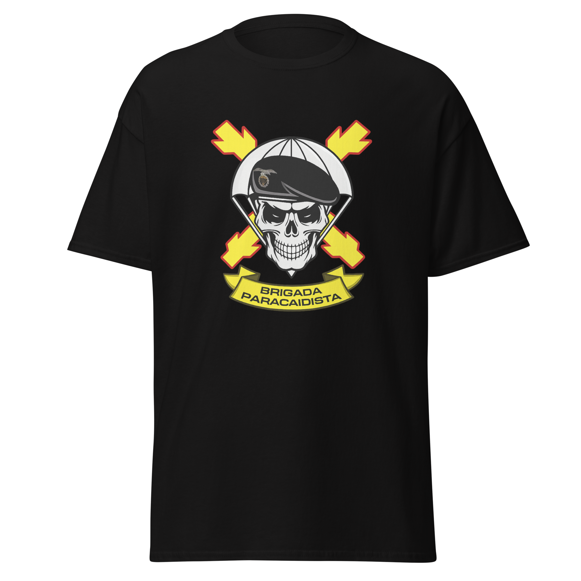 Camiseta confeccionada en algodón 100% con ilustración frontal del emblema de la Brigada Paracaidista (BRIPAC). Diseño contundente y reconocible que representa el espíritu y la identidad de una de las unidades más emblemáticas.