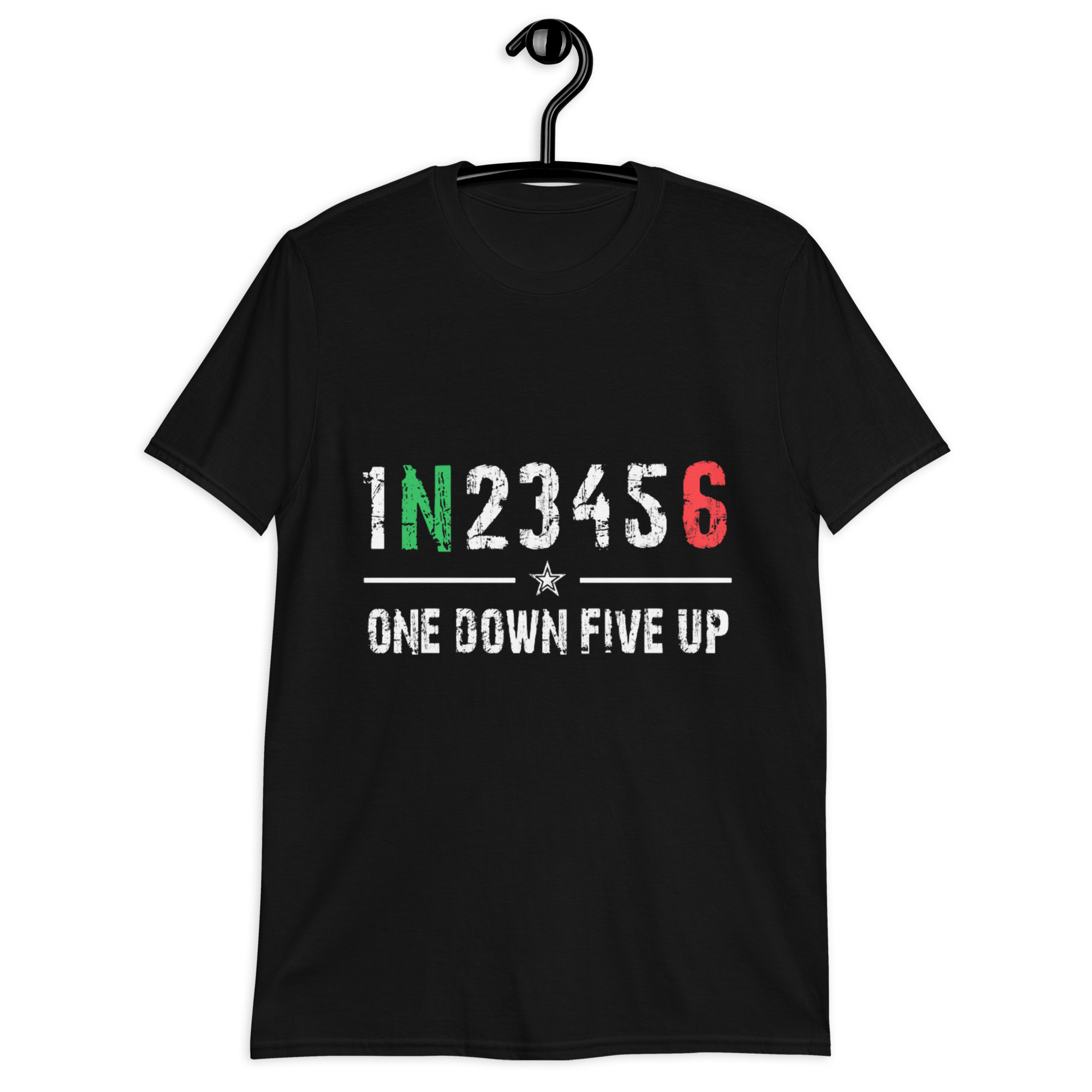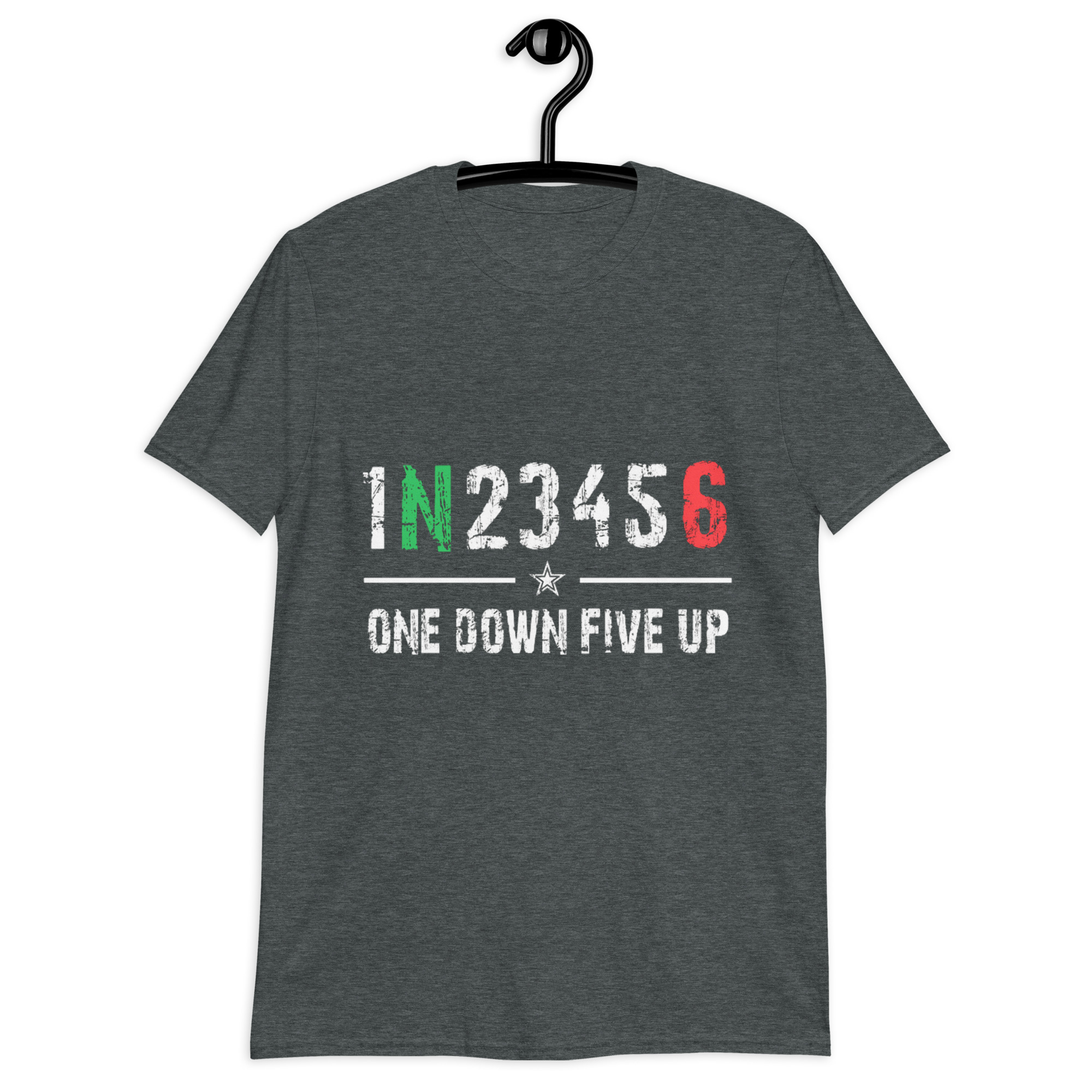 Para los que entienden que una simple secuencia de números puede decir más que mil palabras. Esta camiseta luce en el pecho el icónico esquema de marchas de izquierda a derecha: 1 – N – 2 – 3 – 4 – 5 – 6, acompañado del texto “ONE DOWN FIVE UP” justo debajo, el lema que resume a la perfección el alma de todo piloto de moto.