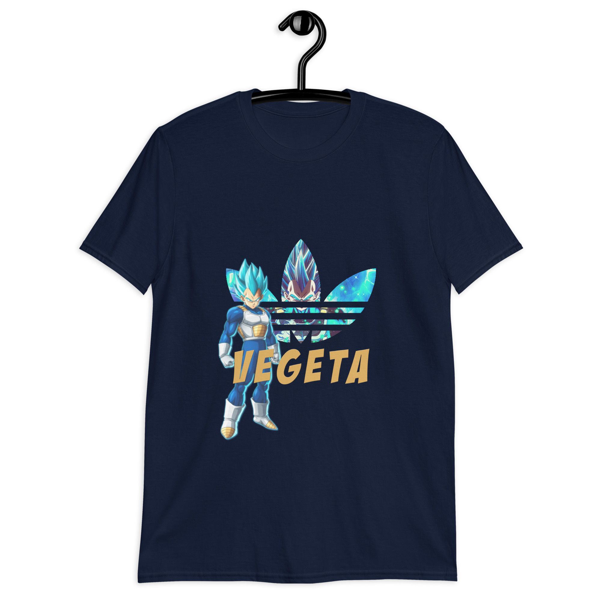 Demuestra tu orgullo Saiyajin con esta camiseta inspirada en Vegeta en su forma Super Saiyan Blue. Un diseño exclusivo que fusiona el poder de Dragon Ball con el estilo urbano actual: el príncipe de los Saiyajin aparece sobre un fondo galáctico con un guiño a las grandes marcas de moda, combinando fuerza, actitud y elegancia. Ideal para fans que quieren destacar sin perder el toque épico.
